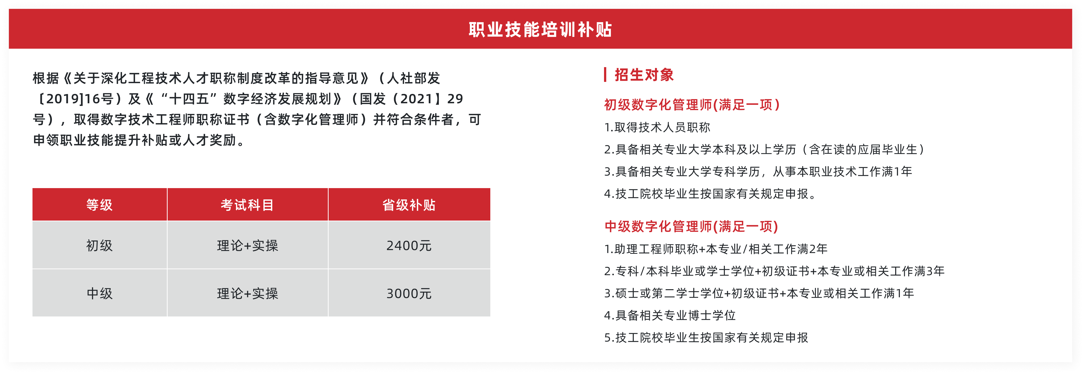 ②职称认定:取得数字技术工程师培训项目初级、中级专业技术等级证书的,可纳入各地各部门相关专业初级、中级职称认定范围;取得高级专业技术等级证书的,可作为申报高级职称评审的重要参考;认定程序和材料要求《广东省初次职称考核认定规定》执行。
