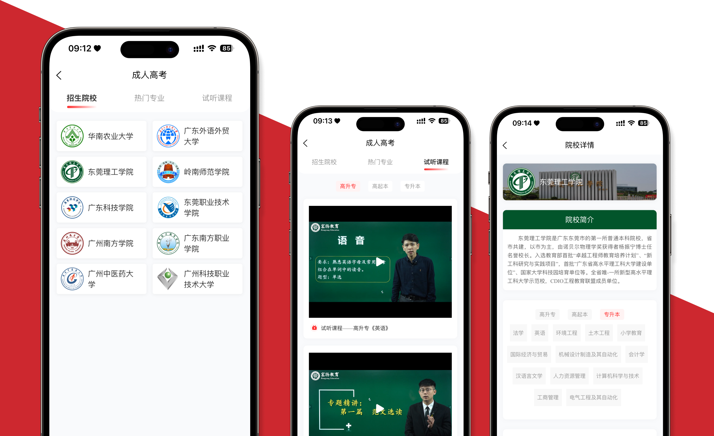 打开APP,合作院校信息、招生专业详情与试听课程入口便清晰呈现,让求学信息的获取更高效直接,挣脱线下束缚。